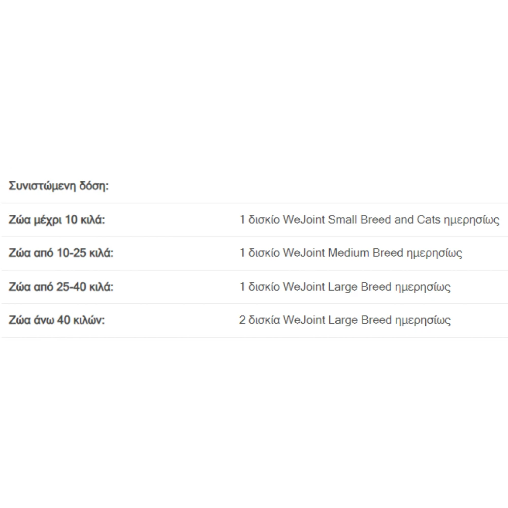Τα εύγευστα δισκία WeJoint για σκύλους και γάτες συστήνονται για νεαρά αναπτυσσόμενα, ενήλικα & υπερήλικα ζώα, με υψηλή σωματική άσκηση ή σε κάθε περίπτωση αρθροπάθειας.