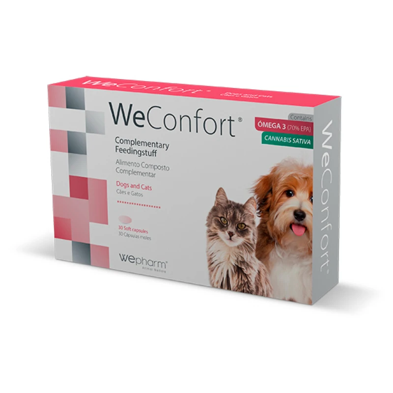 Τo WeConfort για σκύλους και γάτες αναπτύχθηκε με σκοπό την διατροφική υποστήριξη και την προώθηση της συνολικής ευεξίας, δηλαδή τον έλεγχο των διαδικασιών που σχετίζονται με τον πόνο και τη φλεγμονή.