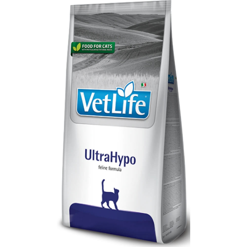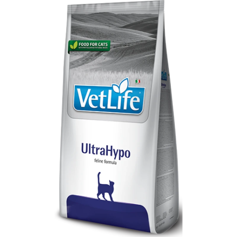 Η Farmina Vet Life UltraHypo είναι μια πλήρης διαιτητική τροφή για γάτες που υποφέρουν από ανεπιθύμητες αντιδράσεις σε τρόφιμα (αλλεργίες και/ή δυσανεξίες). Μπορεί να χρησιμοποιηθεί ως διαγνωστικό εργαλείο (δίαιτα αποβολών). Συνιστάται κατά τη διάρκεια των χρόνιων φλεγμονωδών νόσων του εντέρου (IBD), επαναλαμβανόμενου εμετού.